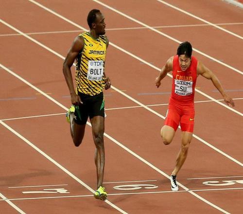 2015年8月23日,蘇炳添與博爾特同組較量。視覺(jué)中國(guó) 圖