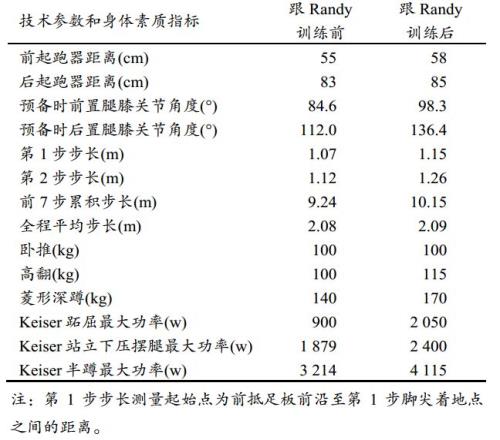 跟隨蘭迪訓練前、后蘇炳添部分技術參數(shù)和身體素質對比丨參考文獻[1]